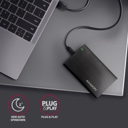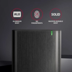 Dette elegante aluminiumskabinet muliggør nem og hurtig montering uden brug af skruer. Understøttelse af SATA 6G og UASP-teknologi sikrer maksimal ydelse for SSD-diske, mens TRIM-funktionen hjælper med at reducere ydelsesforringelse over tid. Takket være understøttelse af S.M.A.R.T. kan du nemt overvåge tilstanden af de tilsluttede diske.