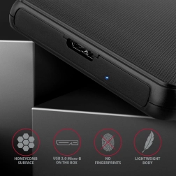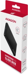 AXAGON EE25-SL er udstyret med et USB 3.2 Gen 1-interface med hastigheder op til 5 Gbit/s, hvilket muliggør effektiv dataplanlægning. Den er kompatibel med alle 2.5" HDD eller SSD uden kapacitetsbegrænsning og med en diskhøjde op til 9,5 mm.
