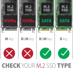 AXAGON-kabinettet giver pålidelig tilslutning til computeren via den vendbare USB-C-konnektor og det medfølgende USB-C -> USB-A-kabel. SATA 6G-grænsefladen gør det muligt at udnytte den høje hastighed i moderne M.2 SSD’er. Kabinettet understøtter moderne funktioner som UASP, TRIM og læsning af S.M.A.R.T.-information til overvågning af diskens tilstand.