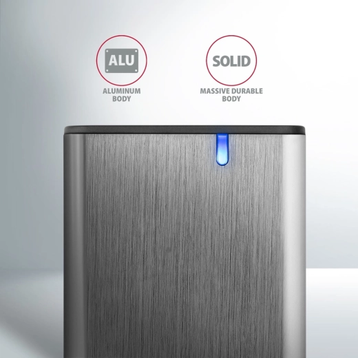 Den ydre metaloverflade bidrager til effektiv køling. Etuiet er kompatibelt ikke kun med computere, men også mobile enheder. Pakken indeholder alle nødvendige komponenter til nem installation og tilslutning.