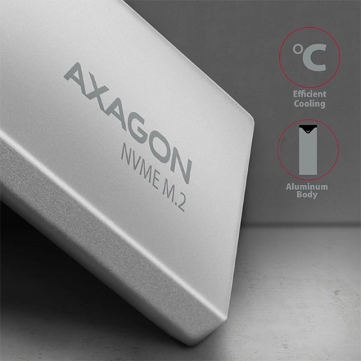 AXAGON-etui til ekstern disk er designet til NVMe M.2 SSD og tilbyder takket være USB 3.2 Gen 2-grænsefladen overførselshastigheder op til 10 Gb/s. Den aluminiumsbaserede konstruktion sikrer optimal køling, og bred kompatibilitet gør det muligt at tilslutte til en lang række enheder.