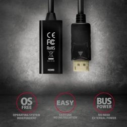 Denne kompakte adapter er ideel til steder med begrænset plads, hvor det er nok blot at have et HDMI-kabel. Det er en enkel og effektiv løsning til at konvertere signalet fra DisplayPort til HDMI.