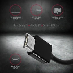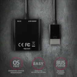 Denne aktive adapter muliggør overførsel af billede op til opløsning 1920x1200 (WUXGA) med en opdateringsfrekvens på 60 Hz. Takket være det innovative design leverer den billedkvalitet i høj opløsning med skarpt resultat. Den er ensrettet – fra HDMI til VGA, ikke til omvendt konvertering.