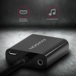 Adapteren har stereoudgang (3,5 mm jack) til tilslutning af hovedtelefoner eller aktive højttalere, med mulighed for at indstille samplingsfrekvensen til 32 / 44,1 / 48 kHz ved 16 eller 24 bit. Via microUSB-stikket kan adapteren forsynes med strøm selv fra enheder med lavere udgangseffekt som Raspberry Pi og Apple TV.