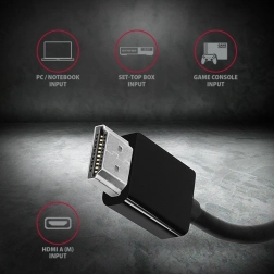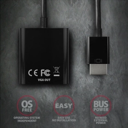 Adapteren får strøm direkte fra HDMI, så den kræver ingen ekstern strømforsyning. Takket være hardwarekonvertering fungerer den uden drivere i ethvert operativsystem og understøtter både spejling og udvidet skrivebord. De kompakte mål og den faste kabel længde på ca. 17 cm gør den til en ideel rejse- og kontorpartner.
