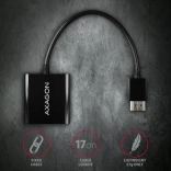 Den praktiske HDMI → VGA-konverter fra AXAGON løser tilslutning af ældre visningsenheder til enheder med HDMI-udgang – fra computere og bærbare til set-top-bokse og spilkonsoller som Xbox og PlayStation. Det er en aktiv enkeltsidet adapter (HDMI → VGA), som uden installation konverterer det digitale signal til analogt og leverer et skarpt og stabilt billede op til 1920×1200/60 Hz.