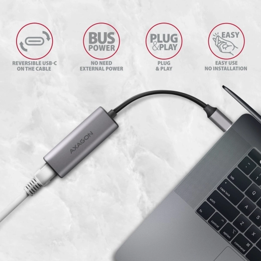 Den eksterne netværksadapter fra AXAGON forvandler en USB‑C 3.2 Gen 1-port til en meget hurtig kablet 2,5GbE-forbindelse. Den udvider computeren med en manglende RJ‑45, tilføjer et andet netværksinterface eller erstatter et defekt indbygget netkort. Takket være IEEE 802.3bz (NBASE‑T) når du op til 2,5 Gb/s selv over almindelige Cat5e/Cat6-kabler op til 100 m.