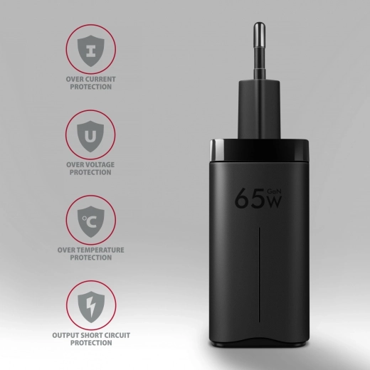 Den universelle oplader med samlet effekt på 65W kan hurtigt oplade telefoner, tablets og laptops. To vendbare USB‑C-porte og én USB‑A giver fleksible opladningskombinationer inklusive intelligent effektfordeling. Med GaN-chipset er opladerens kabinet markant mindre, lettere og mere effektivt – ideel til rejser.