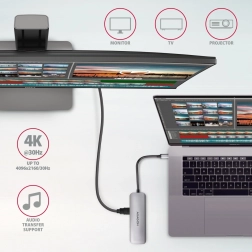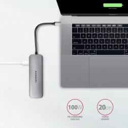 Alsidig 5-i-1 hub forvandler én USB-C-port til mange muligheder. Tilslut eksterne drev, mus og tastatur, læs SD/microSD-kort og spejl samtidig billedet via HDMI op til 4K/30 Hz. Med USB-C Power Delivery kan du nemt strømforsyne en bærbar med op til 100 W – du sparer både port og kabel.