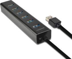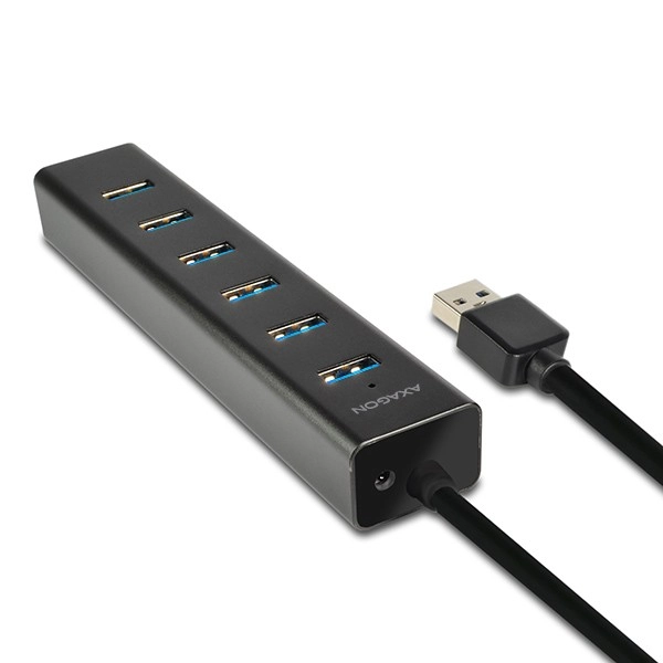 Udvid din computers tilslutningsmuligheder med den elegante AXAGON-hub i aluminium med syv USB-porte. Understøttelse af USB 3.2 Gen 1 (5 Gb/s) sikrer hurtig dataoverførsel, mens USB Battery Charging 1.2 gør det muligt at oplade telefoner, tablets og powerbanks med op til 2 A i enhver port. Takket være den gode afstand mellem portene kan du nemt tilslutte mere voluminøse enheder.