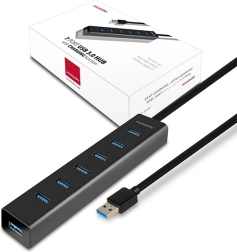 Syv porte med SuperSpeed-understøttelse sikrer jævn overførsel af store filer og pålidelig tilslutning af periferiudstyr. Bagudkompatibel med USB 2.0/1.1.