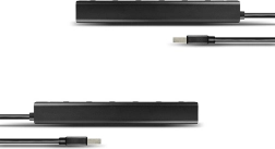 Kompakt aluminiumsdesign med tilstrækkelig afstand mellem portene gør det muligt at tilslutte selv større enheder. Den faste 40 cm kabel er ideel til bærbare computere.