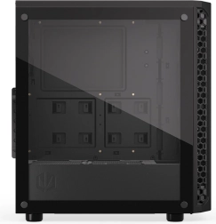 Det robuste glas-sidepanel fremhæver dine komponenter og RGB-belysning i flot stil uden at gå på kompromis med kabinettets stivhed.