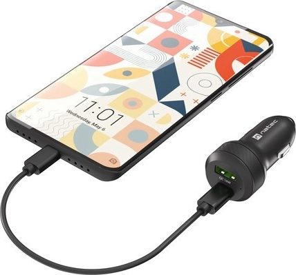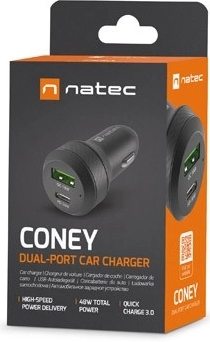 Biloplader NATEC Coney USB-A + USB-C QC 3.0/PD 3.0 48 W sort