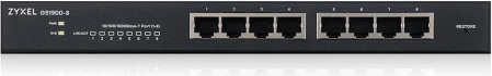 Kompakt administreret switch med otte gigabit RJ-45-porte tilbyder støjsvag drift, fuld gigabit-gennemstrømning og nem webbaseret administration til små og mellemstore virksomheder. Et ideelt upgrade fra en uadministreret switch, som sikrer hurtige og stabile firmanet uden flaskehalse.