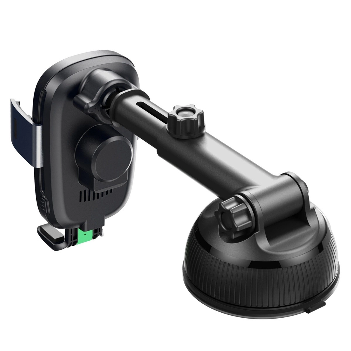 Leder du efter en pålidelig biltelefonholder med hurtig trådløs opladning? Denne model med Qi-teknologi oplader med op til 15 W og er kompatibel med både iOS- og Android-enheder. Nærhedssensor og tyngdesensor lukker automatisk aluminiumsarmene, som med bløde puder holder din smartphone (4,7–6,7”) sikkert og skånsomt.