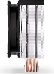 Endorfy Fera 5 er designet til effektiv køling i kompakte systemer. Den asymmetriske køleprofil med tæt finning og fire kobber‑heatpipes leder hurtigt varmen væk fra CPU’en, mens optimering til ensrettet luftstrøm øger effektiviteten under realistiske forhold.
