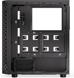 Sidepanelet i hærdet glas fremhæver dine komponenter og lyseffekter i al deres pragt. Kabinettet kombinerer ydeevne, stil og holdbarhed i ét.