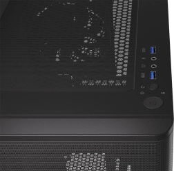 ENDORFY Ventum 200 Solid er et gennemtænkt PC-kabinet med fokus på effektiv køling, nem montering og et rent udtryk. Sidepladen i stål beskytter komponenterne, mens det fint perforerede frontpanel lader rigeligt med luft passere og samtidig fanger støv. Takket være det slanke fodaftryk passer kabinettet nemt på eller under skrivebordet, men kan stadig rumme kraftige builds.