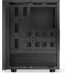 I kabinettet installerer du nemt et ATX-motherboard, lagerplads til op til 3× 2,5" (eller 1× 3,5" + 2× 2,5") og kraftig køling: foran op til 360 mm radiator, i toppen 240 mm radiator. Til luftkøling er der forberedt op til 7 blæserpositioner – én kvalitets Stratus 120 PWM medfølger.