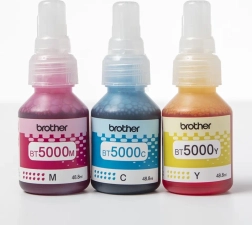 Oplev topydelsen fra Brother BT5000CLVAL blæk, som er modstandsdygtigt over for falmning. Disse blækflasker sikrer jævn og pålidelig udskrivning i højeste kvalitet fra første til sidste side og garanterer problemfri kompatibilitet med Brother-printere.