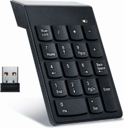 Mangler din bærbare et numerisk tastatur? Dette trådløse numeriske tastatur fra Gembird er en praktisk løsning til dagligt arbejde i Excel, regneark og dataindtastning. Takket være trådløs 2,4 GHz-teknologi og en lille USB-modtager tilslutter du det nemt til enhver pc eller bærbar med USB-port.