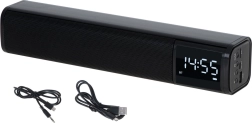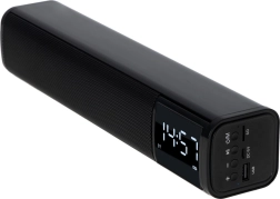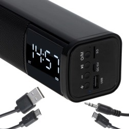 Leder du efter en kompakt løsning til skrivebord eller natbord? Denne multifunktionelle højttaler i soundbar-udførelse tilbyder ren og afbalanceret lyd, overskuelige LED-ur og et praktisk vækkeur. Stream musik trådløst via Bluetooth 5.0, eller brug afspilning fra USB og SD-kort. Til kablede kilder er der en AUX-indgang tilgængelig.