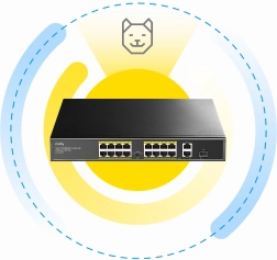 Switchen med 16 port 10/100M PoE+ er designet til effektiv strømforsyning og datatransmission i netværksapplikationer. Med integrerede 2 uplink-porte 10/100/1000M og en kombineret SFP-port giver det fleksibilitet til netværksudvidelse.