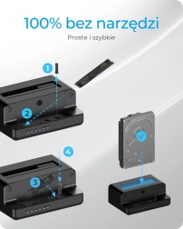 Mød dockingstationen, der tilbyder problemfri udskiftning af diske takket være Plug & Play-funktionen uden behov for værktøj. Spar tid og få øjeblikkelig adgang til dine data. Med USB 3.2 Gen 2 får du dataoverførselshastigheder op til 10 Gbit/s, hvilket muliggør hurtig indlæsning og fuldt udbytte af dine diske.