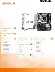 Bundkortet ASRock B760 Pro RS understøtter Intel Core-processorer i 13. og 12. generation med LGA1700-sokkel, hvilket sikrer kompatibilitet med moderne CPU’er. Kortet understøtter DDR5-hukommelse med hastigheder op til 7200MHz, hvilket muliggør hurtig dataoverførsel og effektivt arbejde. Takket være PCIe 5.0, 4.0 og 3.0 samt M.2-konnektorer tilbyder det rige muligheder for udvidelse og øget systemydelse.
