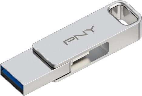 Kompakt og robust flashdrev PNY Duo Link 256 GB med dobbelt stik USB‑C og USB‑A forbinder moderne telefoner, tablets og computere. Tilbyder læsehastighed op til 200 MB/s, hurtige sikkerhedskopier på farten og nem frigørelse af plads på telefonen ved overførsel af fotos, videoer og dokumenter.