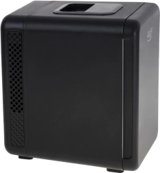 Det lette mini-køleskab med praktisk håndtag er nemt at bære mellem hjemmet, kontoret og bilen. Det minimalistiske design i sort passer ind i enhver indretning.