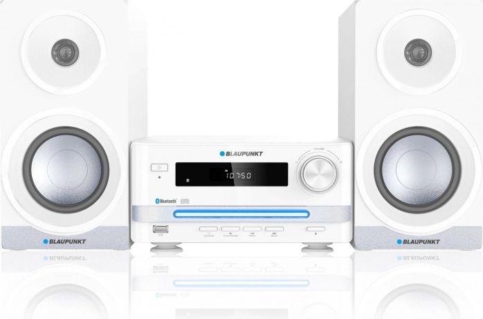 Det stilfulde hvide mikrosystem BLAUPUNKT MS16BT EDITION er ideelt til mindre rum, hvor du ønsker maksimal funktionalitet i et elegant kabinet. Afspil dine favorit-playlister via Bluetooth, musik fra CD (Audio-CD, CD-R/RW med MP3/WMA) samt USB-flashdrev op til 32 GB. Det overskuelige LED-display og den bagbelyste CD-mekanisme giver nem betjening i enhver situation.