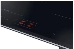 Samsung induktionskogeplade er designet til moderne køkkener med en fleksibel Flex Zone, som gør det muligt at lave mad med forskelligt kogegrej samtidig takket være det brede, rektangulære felt. Funktionen Wi‑Fi‑forbindelse giver komfort og gør det muligt at overvåge kogepladen hvor som helst via SmartThings‑appen. Desuden er kogepladen udstyret med automatisk sammenkobling med emhætten, som tænder automatisk under brug.