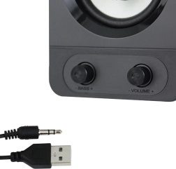Højttalerne er udstyret med knapper til bas og lydstyrke, hvilket forenkler justeringen af lyden til dine behov.