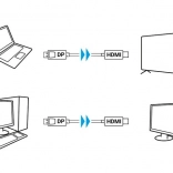 Designet til at tilslutte en computer med DisplayPort til en monitor eller et TV med HDMI. Ikke kompatibel i modsat retning (HDMI → DP).