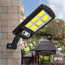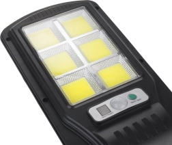 Praktisk solcelledrevet LED-lampe med tre lysindstillinger, som tilbyder energibesparende udendørsbelysning uden kabler. Takket være den integrerede bevægelses- og skumringssensor lyser den kun, når det er nødvendigt. Fjernbetjeningen gør det nemt at vælge tilstande, og det kølige hvide lys på 6500 K sikrer klar og jævn belysning af indgang, have eller indkørsel.
