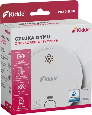 Optiske sensorer er følsomme over for synlig røg og giver fremragende beskyttelse især ved langsom ulmen af materialer. Modellen KIDDE 2030-DSR kombinerer nem batteridrevet installation med høj pålidelighed og et elegant udseende, der ikke forstyrrer interiøret. Funktionen TEST & HUSH muliggør hurtig statuskontrol og midlertidig dæmpning af en utilsigtet udløst alarm.