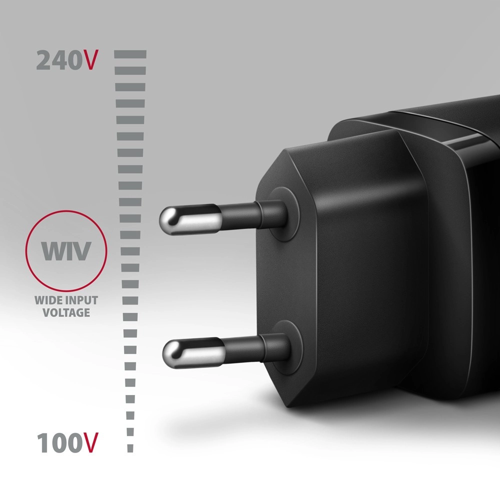 Hold dine enheder opladet hurtigt og uden ventetid. Med portene USB‑C (PD 3.0/QC4+) og USB‑A (QC 3.0) leverer opladeren optimal effekt selv til de nyeste smartphones og tablets, inklusive Apple iPhone og Samsung Galaxy. Teknologien AIC genkender automatisk den tilsluttede enhed og vælger den ideelle opladningsprofil, mens CV/CC opretholder stabil spænding og strøm.