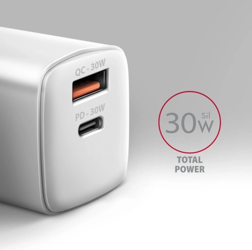 Vægoplader AXAGON 30W PD & QC med USB‑C og USB‑A hvid