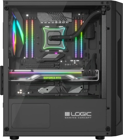 Logic Aramis er et chassis skabt til at bygge en kraftfuld og moderne gaming‑computer. Optimal luftgennemstrømning, praktiske løsninger og forinstallerede ARGB‑ventilatorer understreger dets gaming‑karakter.