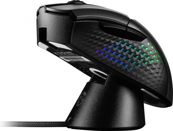 MSI SWIFTSPEED 2.4G, Bluetooth og kabeltilstand dækker alle scenarier. Oplad hurtigt via MSI SNAP CHARGING eller bekvemt på dokningsstationen.