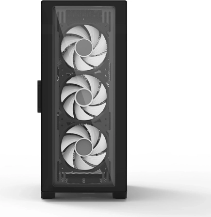 Det generøse mesh på kabinetfronten understøtter kraftig luftgennemstrømning og sænker komponenttemperaturerne selv under lange gaming-sessioner.