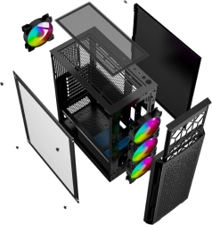 Fornax 400X er et elegant midi-tower, der lægger vægt på rent design og effektiv luftgennemstrømning. Den perforerede front med støvfilter og de forudinstallerede ARGB-blæsere sikrer fremragende køling og attraktive lyseffekter, som nemt kan matches med resten af dine komponenter.