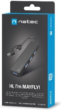 USB-hub NATEC Mayfly 4× USB 3.0 med USB‑C/USB‑A‑adapter, sort