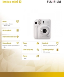 Fujifilm Instax Mini 12 er den ideelle ledsager til ture, fester og hverdagens øjeblikke. Takket være øjeblikkelig print får du fysiske fotos på få sekunder – uden komplicerede indstillinger. Det minimalistiske design og den lave vægt gør den til en stilfuld og praktisk enhed i enhver taske.