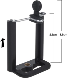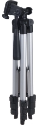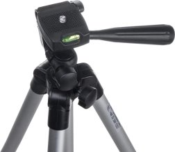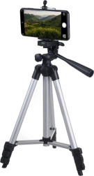 Stativet er udstyret med et fotogevind 1/4" til hurtig montering af kamera eller videokamera. Inkluderet er også en fjederbelastet smartphone-holder til telefoner med en bredde på cirka 5,5–8,5 cm. Det drejelige hoved med håndtag og libelle hjælper dig med at nivellere horisonten præcist og opnå professionelle optagelser.