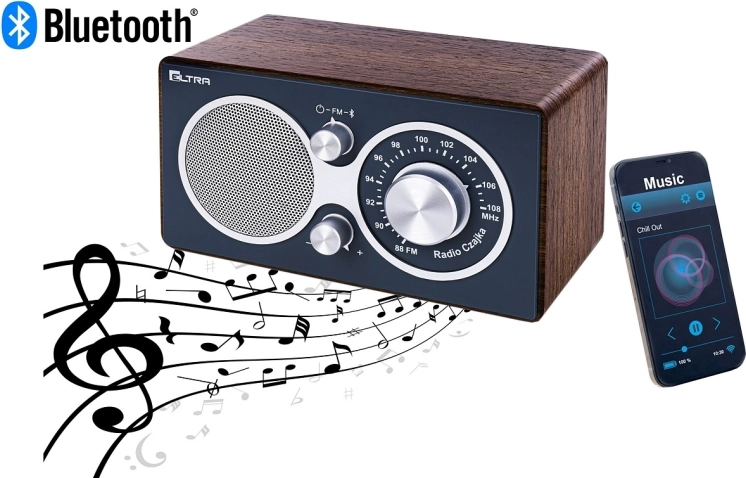 Nyd dine yndlingsstationer og musik fra telefonen med et elegant radio i træfinish. Kombinationen af brunt trækabinet og grå front passer perfekt ind i enhver indretning, fra retro til moderne.
