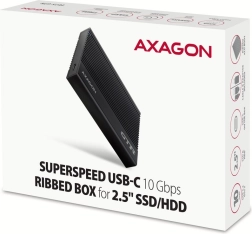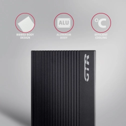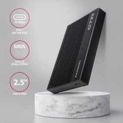 AXAGON EE25-GTR RIBBED etui udmærker sig ved hurtige datatransmissioner op til 10 Gb/s takket være USB 3.2 Gen 2 interface, hvilket sikrer, at hastigheden på din SSD ikke begrænses. Med understøttelse af TRIM undgår du præstationsnedbrydning af SSD, og S.M.A.R.T. funktionen gør det muligt at overvåge diskens tilstand.