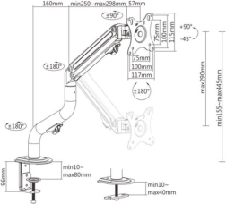 Skrivebordsarm til skærm sikrer en ideel skærmposition og fremmer en sund kropsholdning. Letvægts og kompakt, giver nem justering og understøtter forskellige positioner, inklusiv rotering til "portræt" position.